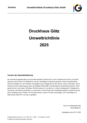 Für den Zeitraum 11/2024–10/2026 leisten wir als Druckhaus Götz GmbH einen finanziellen Klimabeitrag von über 402 Tonnen CO₂e, der in zertifizierte Klimaschutz- und Naturschutzprojekte fließt – sowohl international als auch regional in Mecklenburg-Vorpommern
